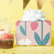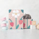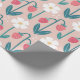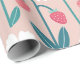 A charming pattern showcasing delicate white blossoms paired with vibrant red strawberries and lush green leaves, set against a soft blush background. The symmetrical arrangement creates a playful yet elegant design.