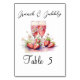 Strawberry Champagne Floral Bridal Shower Party Table Number