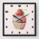 Strawberry Cupcake Sweet Dessert Square Wall Clock