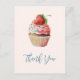 Thank you postcard with a yummy illustration featuring a delicious looking cupcake. White cream and a big strawberry adorn this yummy sweet treat.