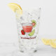 A glass of strawberry daiquiri with garnish. Custom text on both sides.