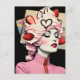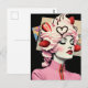 Strawberry Dessert Woman Mixed Media Collage Postcard