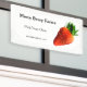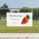 Large strawberry advertises your Pick-Your-Own strawberry farm or farm stand. All text, including Pick Your Own, can be deleted or changed.