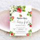 Celebrate your little ones berry first birthday with this charming strawberry-themed invitation. Featuring sweet illustrations of strawberries, blossoms, and greenery, this design sets the perfect tone for a joyful summer party. The elegant mix of cursive and bold fonts makes the details stand out beautifully. Ideal for baby girl birthdays, this invitation is customizable to fit your event and will delight guests with its playful yet stylish look.