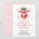 Strawberry first birthday invitation, Pink bow invite, Berry first party template, Strawberry party, Coquette pink bow invitation.