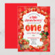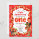 This invitation is for one year old's strawberry themed birthday party!