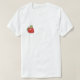 A sweet and whimsical illustration of a tiny green frog sitting proudly on top of a bright red strawberry. The glossy fruit, dotted with golden seeds, contrasts beautifully with the frog’s soft expression and rosy cheeks. Clean lines, vibrant colors, and a cute cartoon style create a cheerful, storybook-like scene full of charm and innocence.