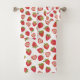 Summer strawberry pattern bath towels. Customise with your own name and initial/monogram. Illustrations from artists own digital artwork. Matching items available. Please contact me for further customisation and special requests. © Zoe Chapman Design