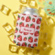Destei's pattern of red strawberries on a light pink background colour. There is also a personalizable text area for a name or other custom text.