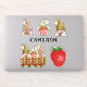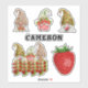 Strawberry gnome collection. The vinyl sticker is 8" x 8" in size. Choose any of the smaller sizes to the 14" x 14" size with this design. Two types of finishes. Personalise this with your name and change the images if you like. Customise it further to change the font or more changes. Ideal vinyl stickers for luggage, cars, lockers, notebooks, lockers, skateboards, helmets, water bottles, lunch boxes, and laptops, for your office, travel, or school. Use these on anything you desire.