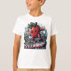 The t-shirt feels and looks great quality, a good thick cotton. It will be a little big for my son, but that means he will be able to wear it and not out grow it too soon. The print was as described on the order when personalised. True size, shape and colour T-shirt- thanks.