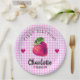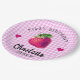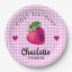 Strawberry Hearts Birthday Girl Pink Chequered Paper Plate