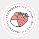 Strawberry ice cream flavour homemade cute fresh fruit strawberries flavoued pink retro cottagecore aesthetic minimal white round sticker circular label tag bundle pack set.