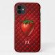 Strawberry illustration on red patterned background with customisable initials or name.