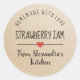 Simple "homemade with love" sticker featuring "strawberry jam" with a black font on a simple white background embellished by a cute red heart. Customise text.