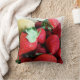 Strawberry Kiwi Throw Pillow-Is photography of fresh fruit produce. Red strawberries with kiwi fruit at top left of the pillow. A perfect pillow for garden rooms, dining areas and even outdoor eating rooms. The berries are on both sides of the pillow.