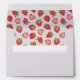 Cute lined envelope with strawberry pattern and lining and name and address to rear. Matching items and other colours available. Artwork from artists own illustrations. Please contact me for customisation and special requests. © Zoe Chapman Design