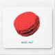 vibrant striking image of strawberry macaroon with text "mais oui!"
