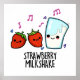 Strawberry Milk Shake Funny Food Pun features a glass of milk and strawberries shaking and grooving to the beat of a song. Funny Pun gift for family and friends who shake with excitement when enjoying strawberry milkshake and puns.