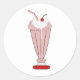 Yummy, strawberry milkshake in a tall old fashioned glass with whipped cream and a cherry on top.