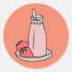 Cute strawberry milkshake design in retro cafe retro milkshake theme. Pink and white colour scheme with fresh strawberries. Colourful and cute retro style.