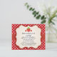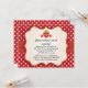 This berry sweet invitation features red and white polka dots background. A red ribbon, and a super cute vintage label. Illustrated with three sweet strawberries.