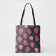 Strawberry tote bag on a dark blue background.  Other colours and matching items available.  Original art from artists own illustrations. Matching items available.  Please contact me for further customisation and special requests.  © Zoe Chapman Design