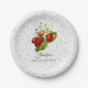 Cute red strawberries personalised lace look paper plates for your party tableware.