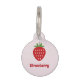 A pink pet tag with an illustration of a strawberry and customisable text above and back! Get it for your new pet or to make a gift to a family who welcomes a new animal!
