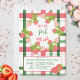 Celebrate your little one’s birthday with sweet charm using this strawberry-themed invitation featuring the delightful phrase "She's the pick of the patch!" The front design showcases a wreath of bright red strawberries framing the text, all set against a cheerful pink and green plaid background—a perfect blend of country-cute and classic little girl style, with a box for your customisable party information. Ideal for a strawberry picnic, garden party, or summery celebration. Personalise the front with your party details, and even add a photo with name and age on the back for a special touch your guests will love. A berry sweet way to invite friends and family to a celebration full of joy, giggles, and sunshine!