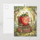 A fantasy strawberry queen or king sitting on a throne of books with a pencil