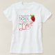 Red strawberry berry with green leaves and a text Strawberry soul with dominating note of love. One of a kind t-shirts, prints and gifts for everyone. Love and romance theme. One of a kind t-shirts, for women. Do not forget to select a style.