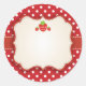 This berry sweet label features red and white polka dots background. A red ribbon, and a super cute vintage label. Illustrated with three sweet strawberries.
