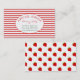NewParkLane - Personalised Business Cards, with a red & white striped pattern and on the back, a cute, colourful pattern of little red strawberries. A fun design, f.i. for a pastry chef!