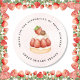 Modern bakery thank you sticker. A cute strawberry watercolor cake drawing with a light pink background.