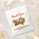 Adorably sweet watercolor strawberry baby shower favour bag - perfect for treating your shower guests with a very special treat as a thank you. This design features a sweet cluster of strawberries with the swirly text "Thank You" matching theme to the strawberry "berry sweet" collection.