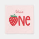 Customise this Strawberry Theme First Birthday napkin with your birthday child's name.