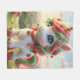 : It is a small white unicorn with a bicolored mane and tail, mixing strawberry pink and mint green. Its hair is sprinkled with small ripe strawberries, and it wears a red collar adorned with a strawberry-shaped pendant.