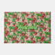 Strawberry leaves, fruits and flowers. Custom background colour. Seamless pattern. Custom text.