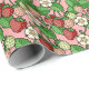 Strawberry leaves, fruits and flowers. Custom background colour. Seamless pattern.