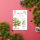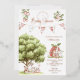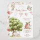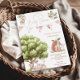A soft and whimsical baby shower design featuring hand-painted forest animals enjoying a sweet strawberry picnic under a lush watercolor tree. This charming layout includes a delicate banner, strawberries in bloom, and a cosy woodland cottage shaped like a strawberry — the perfect blend of storybook magic and rustic elegance.