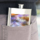 An abstract design of a slow moving stream in summer. The blue sky, clouds and trees are reflected in the water.