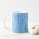 A stream of satiny, pale blue bubbles rises against a light sky blue background
