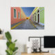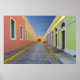 a street in San Juan, Puerto Rico. Colourful buildings, brick pavement.