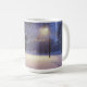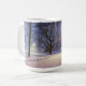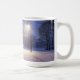Panoramic view of evening winter landscape. View of covered in snow trees in park and street lights in Riga, Latvia...