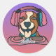 Street Retro Dog with Headphones | Funny Classic Round Sticker