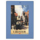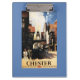Chester, England - Street View with Couple and Tower Clock Rail Poster - Chester, England was created in 1940. This image depicts scenes from Chester, England.