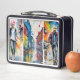 This is a standard metal lunchbox that appears to work just fine. We designed this box ourselves with an uploaded photo and custom text on the front and back. It looks absolutely beautiful except the front of the lunchbox is not centered like it shows in the photo. The print borders don't align with the inset flat part of the box where the preview photo online showed it perfectly centered in there. The back looks nice and centered though.