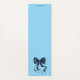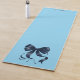 A yoga mat in a shade of sky blue with the inspiring words 'I am Strong' at the top of the mat. A stylish navy blue coquette bow accents it. A great way to be inspired to stay fit and healthy! The background colour of the mat can be changed to whatever you like. Whether you work out at home or take it to a yoga class your mat will inspire you to have a good workout.