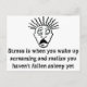 Stress - Wake up screaming T-Shirts & More Features frazzled face and text Stress is when you wake up screaming and realise you haven't fallen asleep yet. Have some fun with one of our great T-Shirts, gifts, and more. Stand out from the Crowd with Mind Design Grafx™ Fashionable, Hip designs. T-shirts.. Sweatshirts.. Hoodies and more. Over 250 choices of apparel alone. Select the style and colour.. just click on the "See All" link in the Choose your style and colour box. Plus, Invitations, Cards, Magnets, Posters, Stickers, Hats, Gift Bags, Buttons, keychains. Posters, Mouse Pads, Mugs and more. Be sure to check out the "Customisable" options. Here's what you can do : Text - add, change text, change text colour and font; Change style, size and background colour; Move design; resize design; add your own photo. So add your own personal flare to this humourous design. You can be confident in buying from Mind Design Grafx™ with our 30 day money back guarantee. Top quality designer products at great prices.